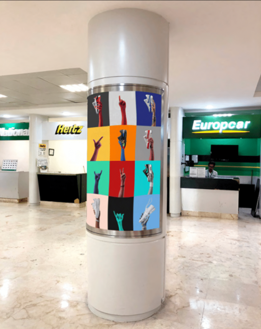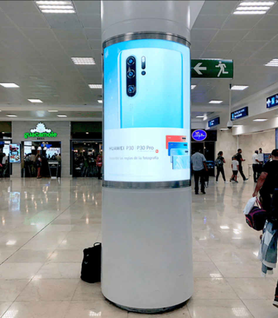 Anuncios ubicados en puntos clave de los aeropuertos, como áreas de embarque, pasillos, y salas de espera.