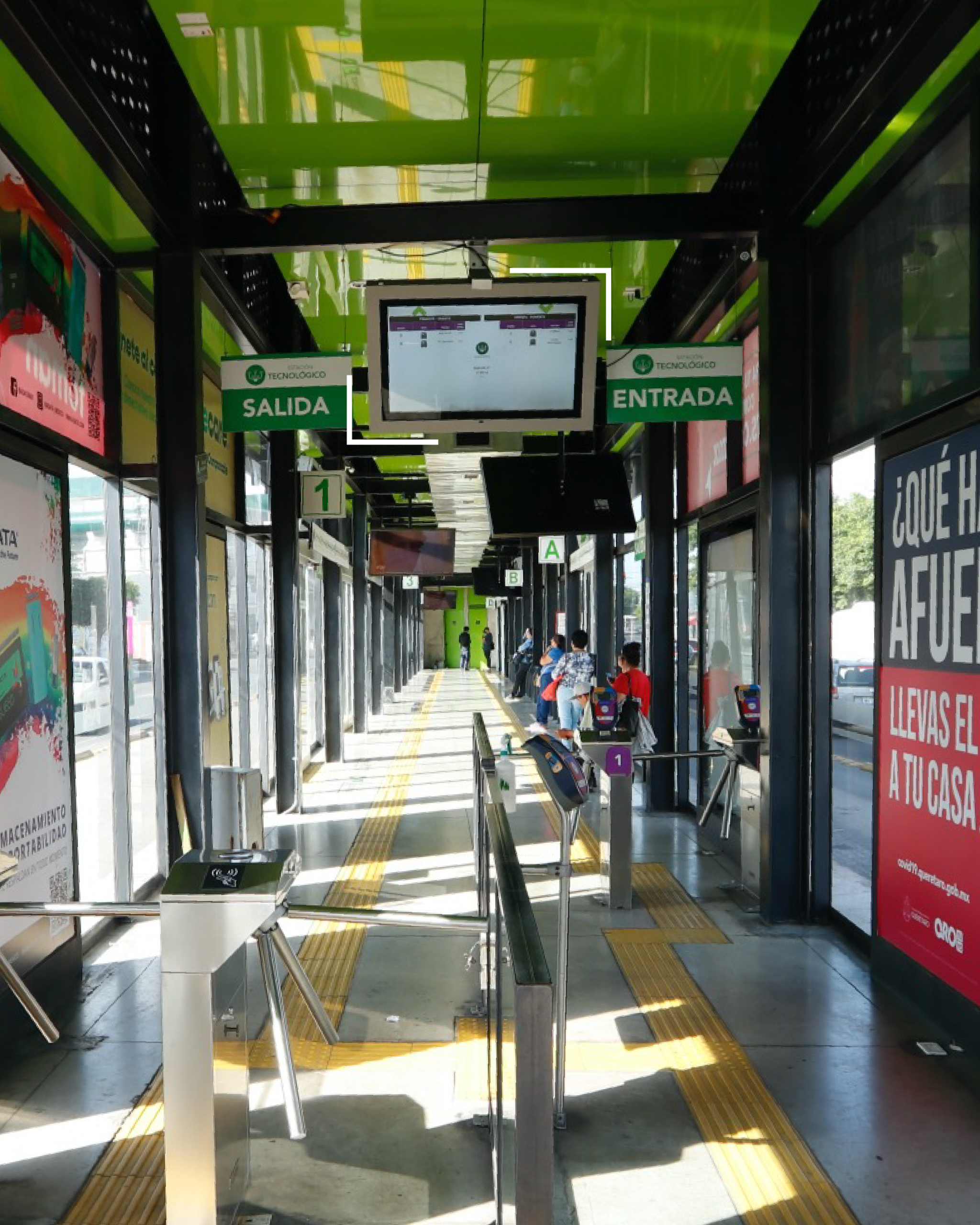Formatos dinámicos en puentes, interior de unidades, estaciones. Ideales para campañas con mayor frecuencia visual y mensajes rotativos.